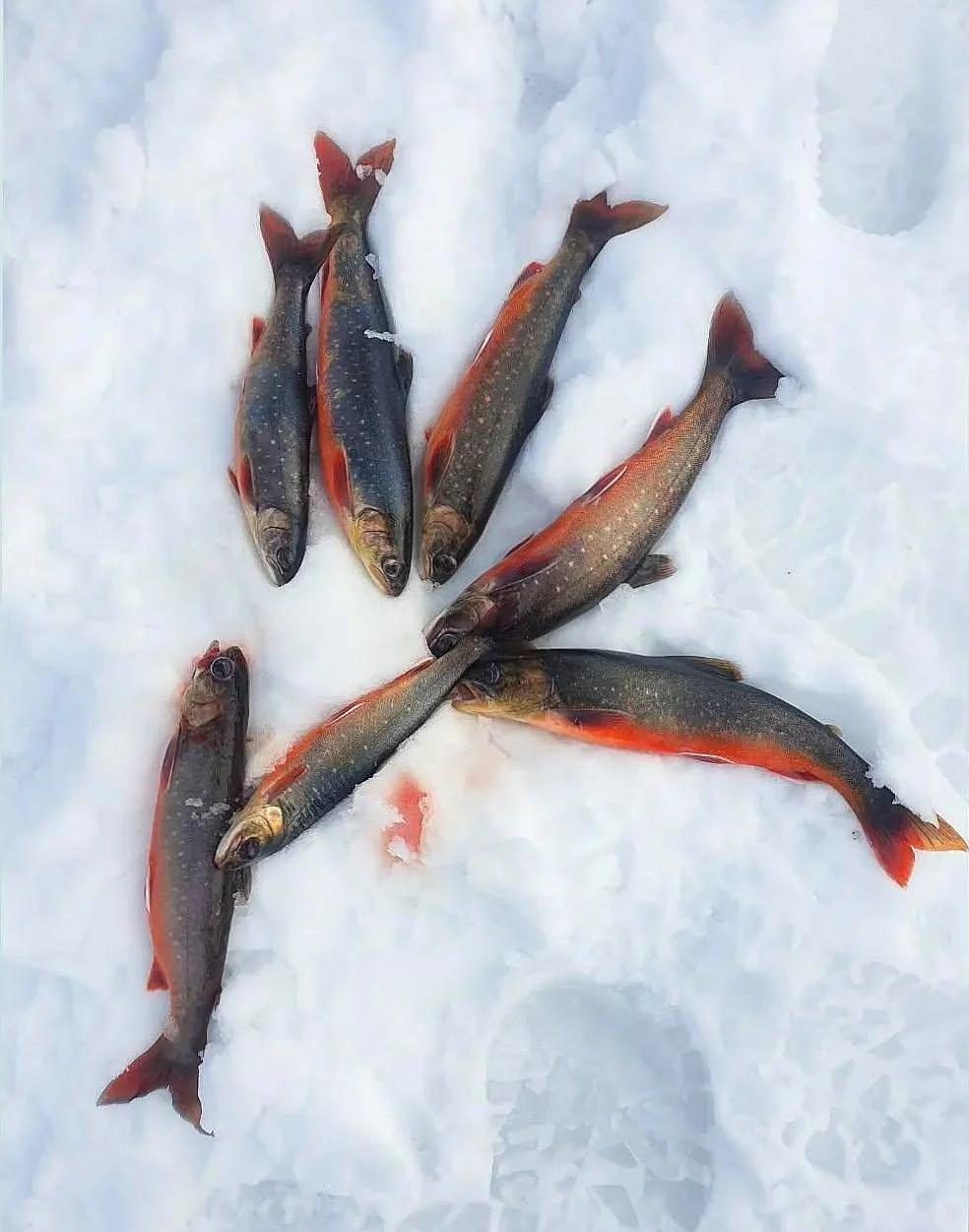 Dag 1 Skotertur där vi tar med oss utrustning för att isfiska vid en av de vackra sjöarna bland fjällen och vi njuter av en enklare lunch över öppen eld.